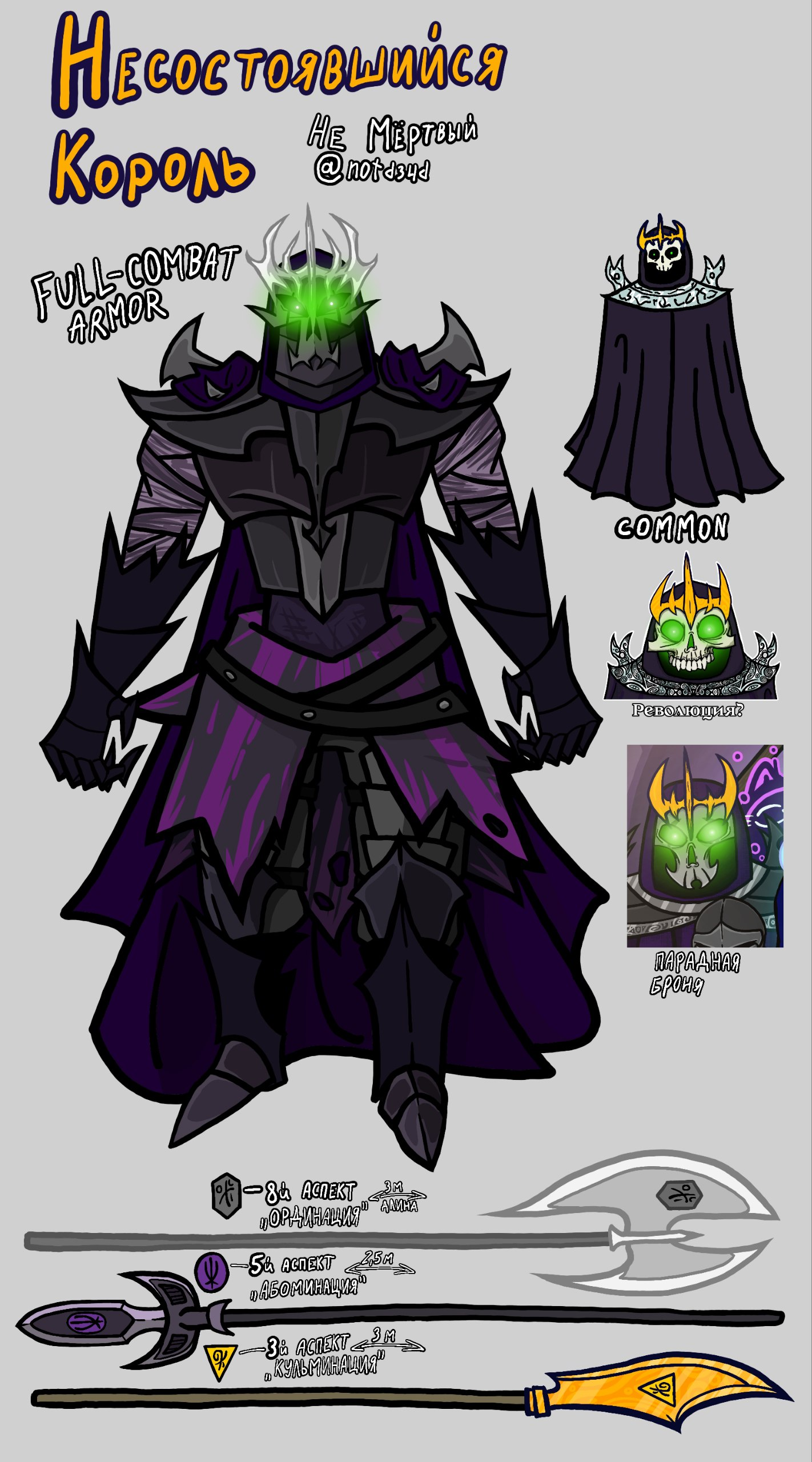 Отличительные черты: корона, фиолетовый плащ, лицо-череп, ярко зеленые зрачки. Осознанная высшая нежить, созданная черным магом Ивилом из революционера, которого казнили при неудавшейся революции. Склонен к агрессии в сторону монархов, часто клинит на определенной фразе.